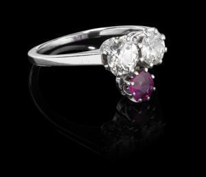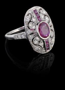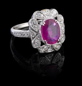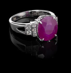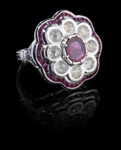 3301. *Bague sertie d'un rubis taille ovale (env. 1,5 ct) entouré de d...