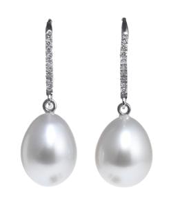 3302. Pendants d'oreilles retenant chacun une perle en goutte rehaussé...