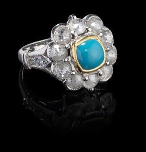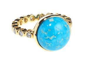 3307. *Bague sertie d'une turquoise taille cabochon (env. 1,5 ct) ento...