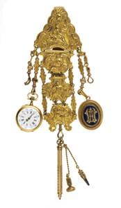 Retenant une montre de poche, un pendentif porte-photo serti d'u...