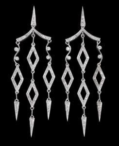 3318. Pendants d'oreilles composés de trois pampilles ajourées pavées...