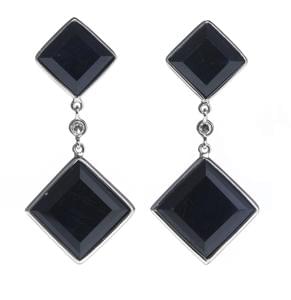 3320. Pendants d'oreilles composés de deux plaques de saphirs retenues...