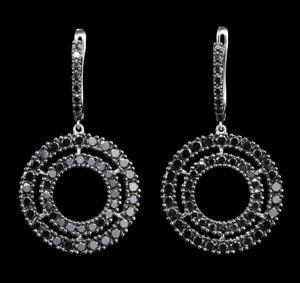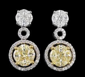 3398. Pendants d'oreilles à motifs circulaires ajourés pavés de diaman...