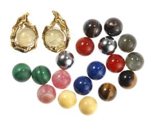Accompagnées de dix paires de billes, notamment en malachite, la...