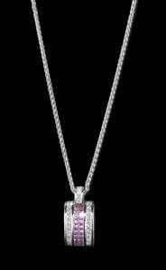 3331. Chaîne retenant un pendentif serti de saphirs roses taille princ...