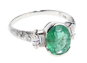 3334. *Bague sertie d'une émeraude taille ovale minor oil (1,74 ct) ép...