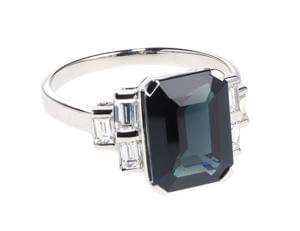 3337. *Bague sertie d'un saphir taille émeraude non chauffé (3,95 ct)...