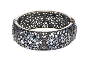 3338. *Bracelet jonc ouvrant ajouré pavé de pierres de Lune formant de...