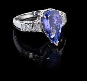 3305. *Bague sertie de trois tanzanites taille ovale (env. 3 ct) alter...