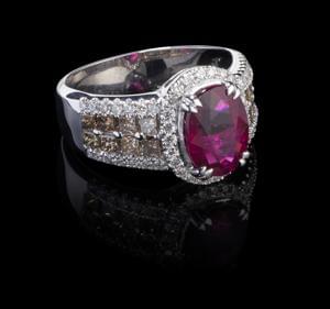 3357. *Bague sertie d'une rubellite taille ovale (2,5 ct)