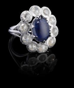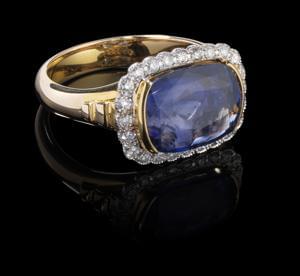 3362. *Bague sertie d'un saphir birman non chauffé taille cabochon ova...