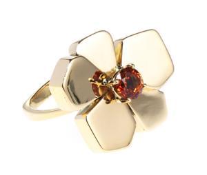 3365. Bague à motif de fleur centrée d'un saphir orange taille brillan...