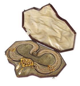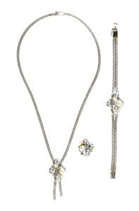 3379. Ensemble d'un collier, d'un bracelet et d'une bague sertis de pe...