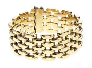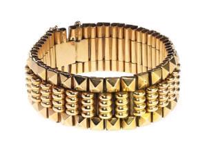 3390. Bracelet manchette à maillons godronnés et à décor de pointes de...