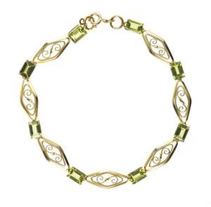 3378. *Bracelet ligne à motif filigrané alterné de péridots taille rec...