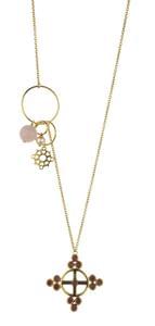3391. Sautoir retenant une croix grecque sertie de rhodolites, ainsi q...
