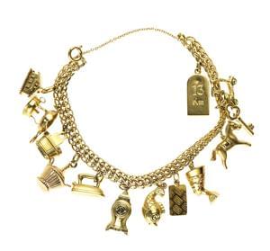 3397. Bracelet à maille gourmette stylisée retenant diverses pendeloqu...