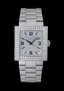 3524. Christian Dior, montre-bracelet carrée à quartz pavée de diamant...