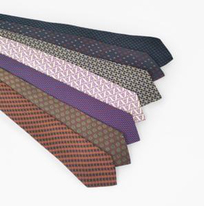 Soie à motifs divers, L 133 à 153 cm. On joint une cravate Chris...