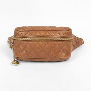Cuir matelassé camel, fermeture zippée, garniture dorée avec fle...