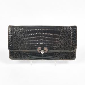Crocodile, fermoir à pression, garniture dorée, bandoulière chaî...