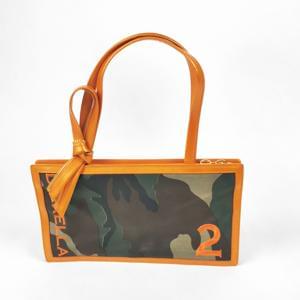 Toile camouflage et cuir orange, garniture dorée, 28x15 cm