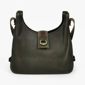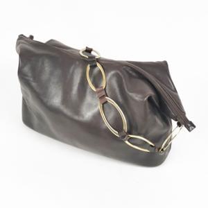 Cuir glacé chocolat, garniture dorée et bambou, bandoulière, env...