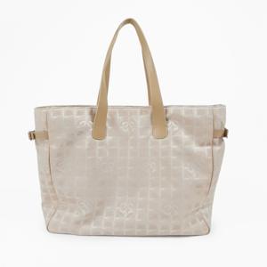 Toile beige en jacquard, anses en cuir, poche latérale avec ferm...