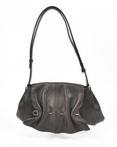 Cuir chocolat, fermeture à rabat plissée, garniture en forme de...