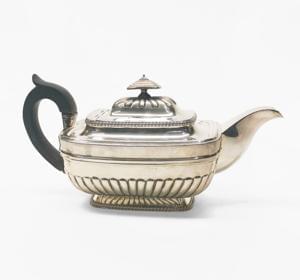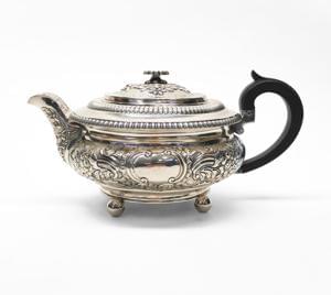 3705. Théière ronde à décor repoussé de fleurs d'époque George III