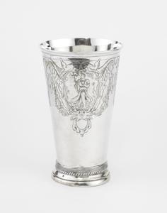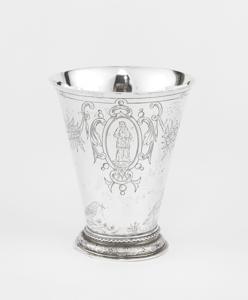 3723. Deux timbales à décor gravé de rinceaux et fleurs