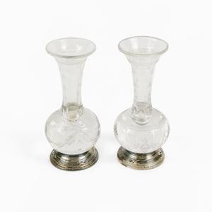 3751. Paire de petits vases en cristal gravé de guirlandes