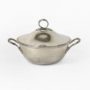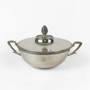 3765. Légumier rond de style Louis XVI gravé d'armoiries d'alliances