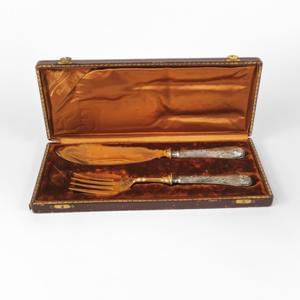 3733. Couverts de service à décor ajouré et ciselé d'un triton et rinc...