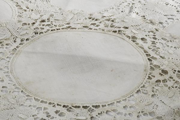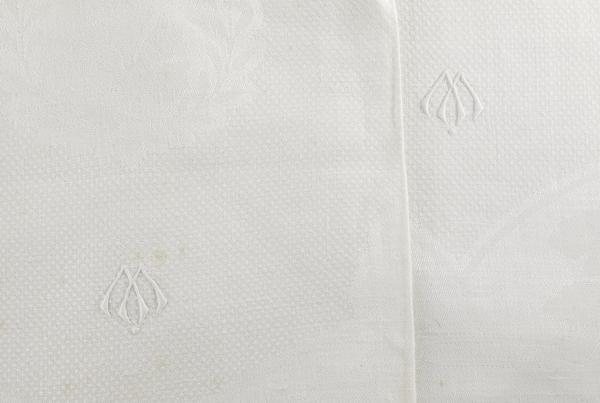 4116. Nappe à décor de guirlandes aux chiffres de la reine Marguerite...