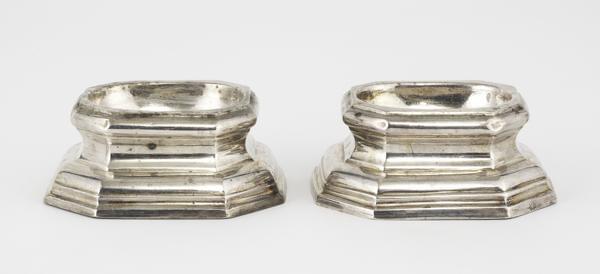 Sheffield, argent et verre bleu cobalt, comprenant: 4 salerons,...