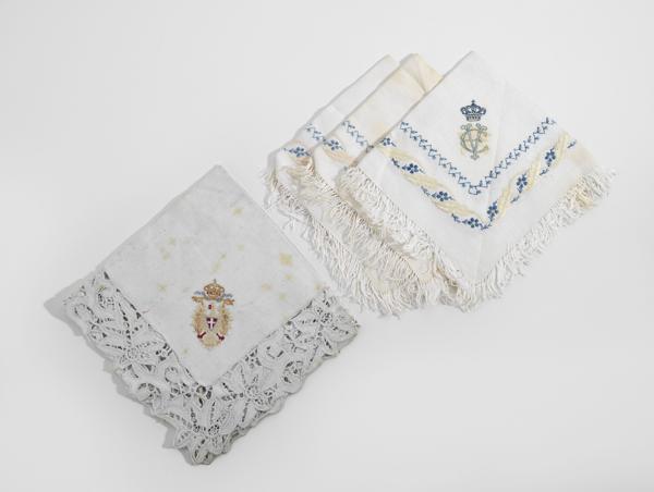 4109. Paire de pochettes à serviette du roi Humbert Ier et de la reine...