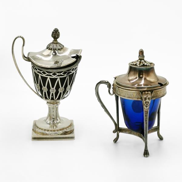 4175. Deux moutardiers d'époque Empire à décor de satyres et ajouré de...