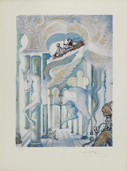 Le cheval du Pharaon, lithographie rehaussée de peinture or, sig...