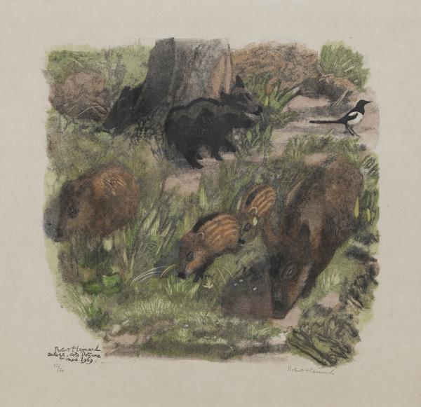 Marcassins, 1er mars 1969, bois gravé, signé et numéroté 32/70,...