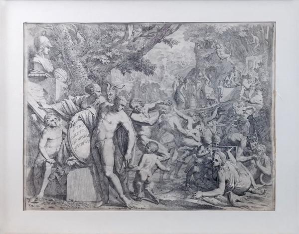 Lutteurs, gravure sur cuivre rayé, 34x26 cm