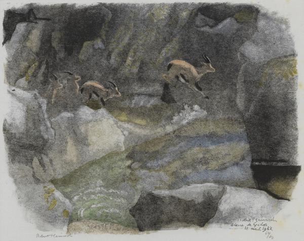 Chamois, Sierra de Gredos, 15 avril 1982, bois gravé, signé et n...