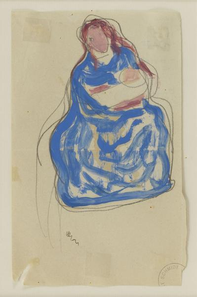Maternité, aquarelle sur papier, cachet de l'atelier, 22x12 cm