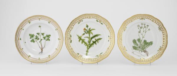 4529. Paire d'assiettes et une creuse, Flora Danica, Saxifraga hypnoid...