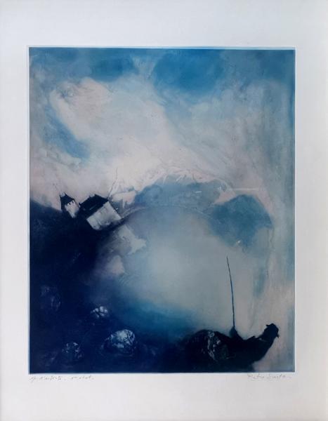 Lac Léman et Chillon, eau-forte, signée, 64x50 cm