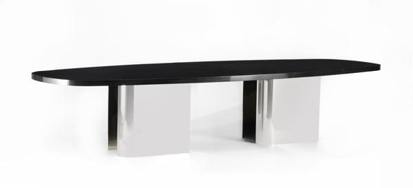 Plateau en bois laqué noir et piètement en métal chromé, 376x74x...