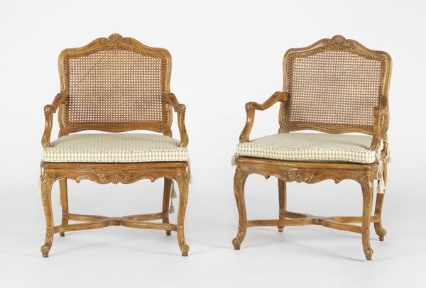 5105. Paire fauteuils cannés à la reine d'époque Louis XV