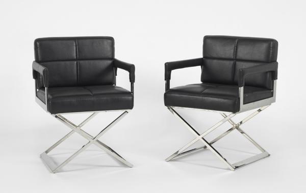 Métal chromé et garniture en cuir noir, non signés et sans marqu...