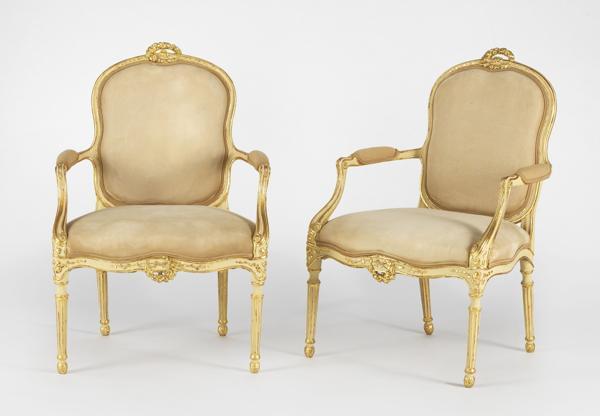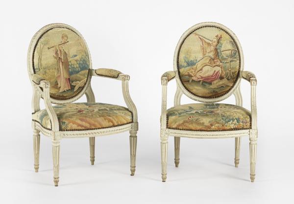 5120. Paire de fauteuils médaillon de style Louis XVI