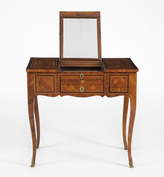 Bois de placage et marqueterie, régule doré, 109x77x33,5 cm
